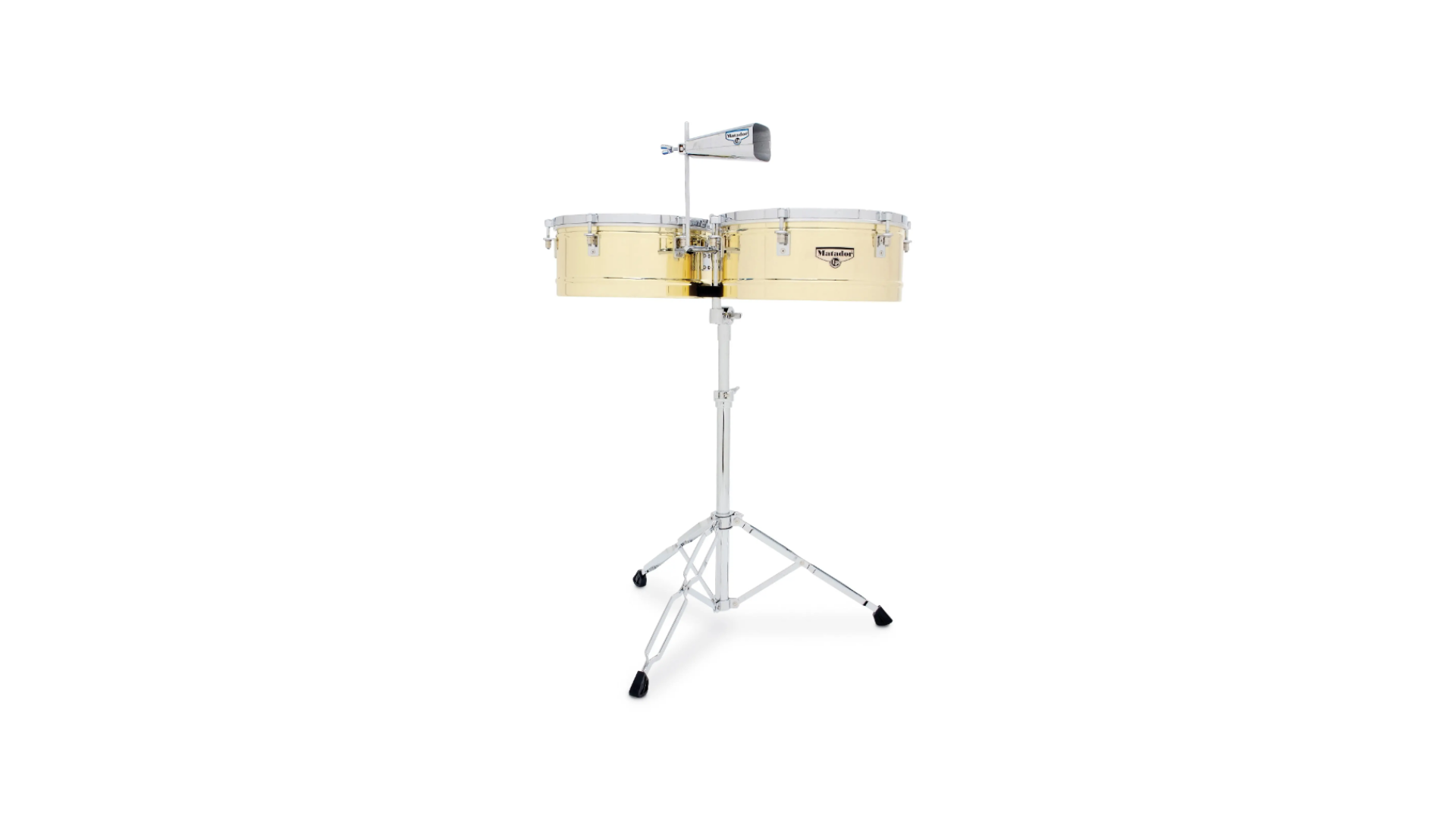 Los timbales LP Matador Brass producen un tono increíble y una proyección asombrosa. Incluye soporte para timbal y soporte para cencerro.