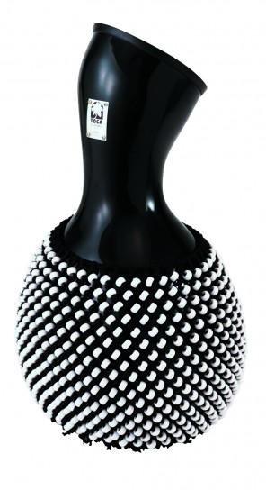 Toca Shekeré de Fibra color negro con cuentas de plástico blancas