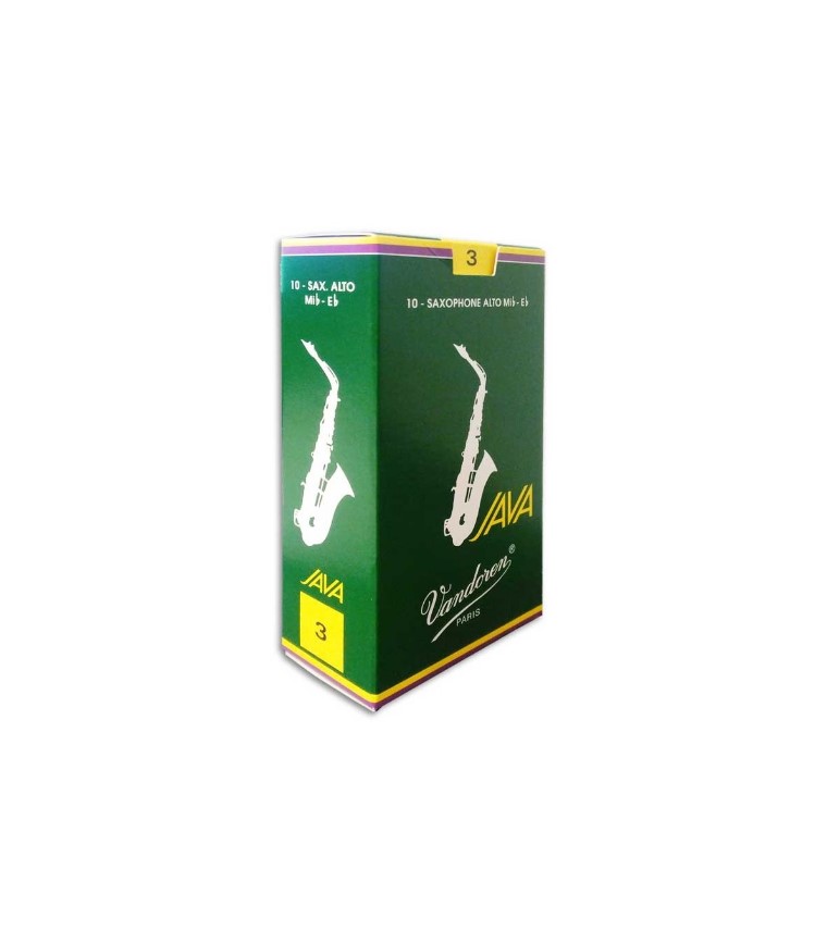 Las cañas Vandoren Java son más flexibles que las tradicionales y las V16, vibrando en una larga superficie y creando una sonoridad brillante con respuesta inmediata. Esta caña SR263 sirve para saxofón alto. Las cañas Java fueron desarrolladas por Vandoren en 1983 teniendo en cuenta los requisitos de los saxofonistas de jazz y música popular. Presentan un extremo más grueso y una lengüeta más flexible que la caña Tradicional, lo que permite la vibración sobre un área de superficie mayor con un máximo de elasticidad.